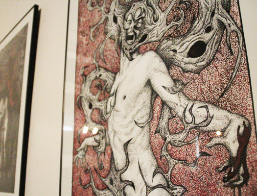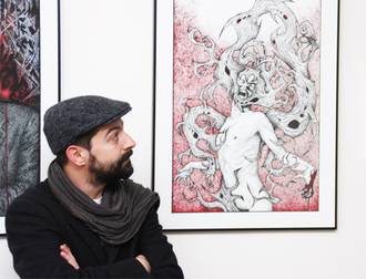 Je dessine depuis tout petit, je m'inspirais de mangas, de comics, de mythologie. Aujourd'hui, je dirais que dans mon travail j'essaie de me créer une mythologie propre, avec des personnages récurrents, assez sombres.