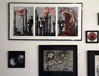 Lors de l'accrochage de l'expo, ils étaient tous présents: Catherine P. avec ses photographies, Jean-François Bouron avec ses peintures, Wood et Gaël Chapo avec leurs dessins et photomontages sous le bras.
